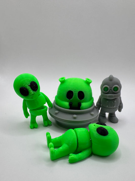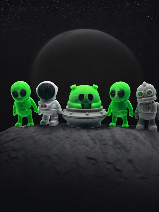 Moon Pod Crew – 3D Printed Space Fidget Toy Set | Aliens, UFO, Robot & Astronaut | Mini Articulated Sci-Fi Figures | Gift for Kids | Whimsizoo