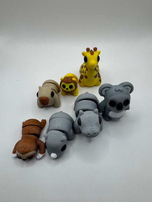 Safari and Jungle Animal Mini Toys – 3D Printed Posable Set with Sloth, Rhino, Koala, Lion, Hippo, Giraffe, Capybara