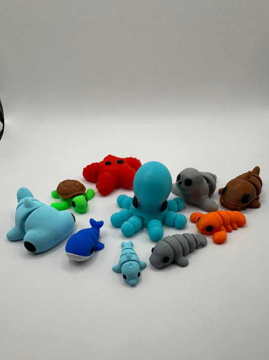 Mini Ocean Animal Fidget Toys – 3D Printed Sea Creatures Set | Sensory Toys for Kids | Beach Party Favors | Montessori Ocean Gift