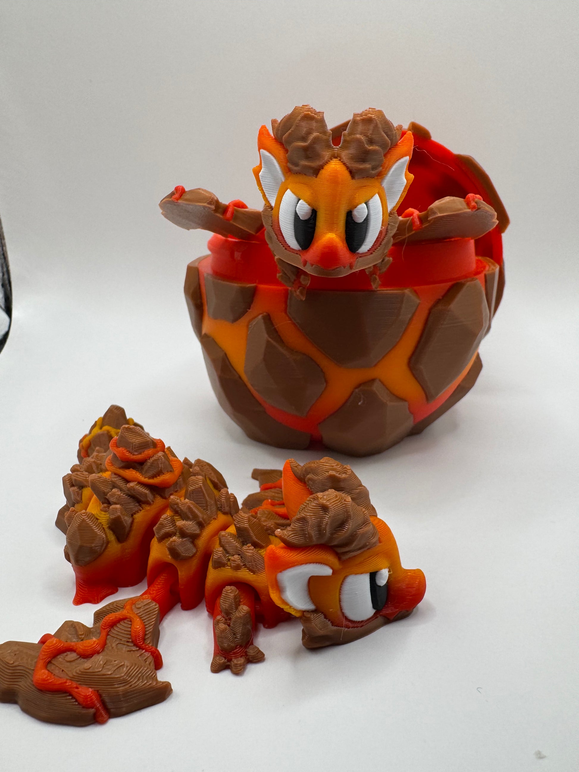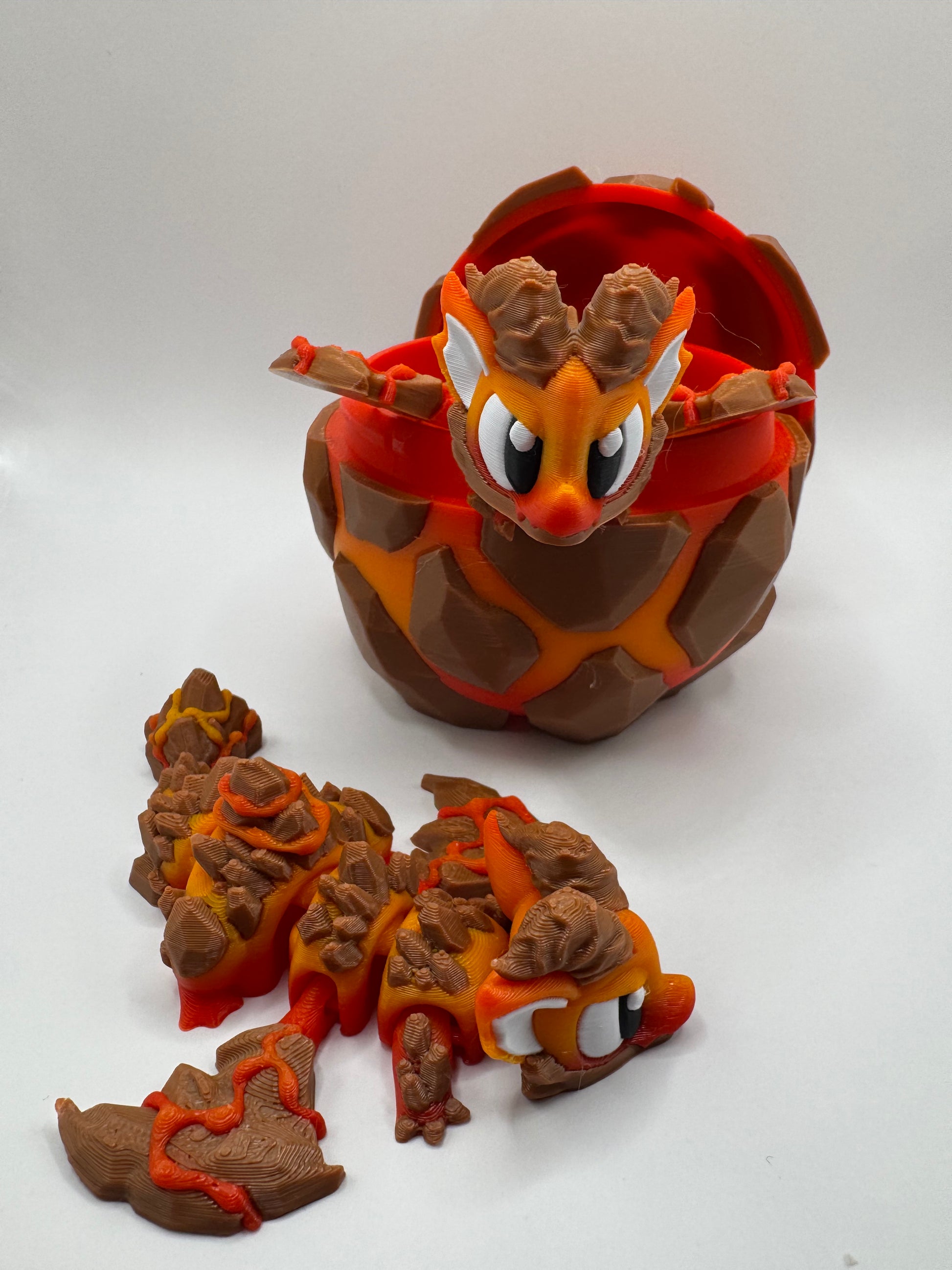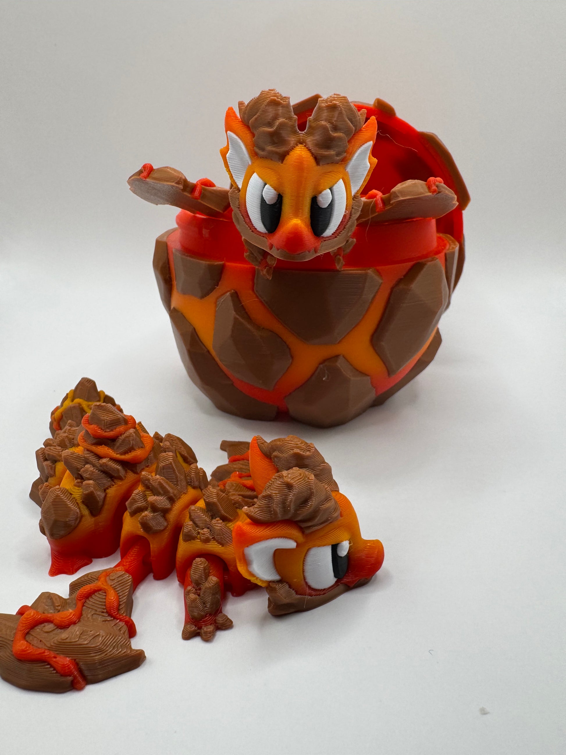 Bring home a touch of mythical fire with this 3D printed red dragon figurine, complete with a matching dragon egg. Designed for fantasy lovers and collectors alike, this mini creature is fully articulated, making it perfect for fidgeting, posing, or display.