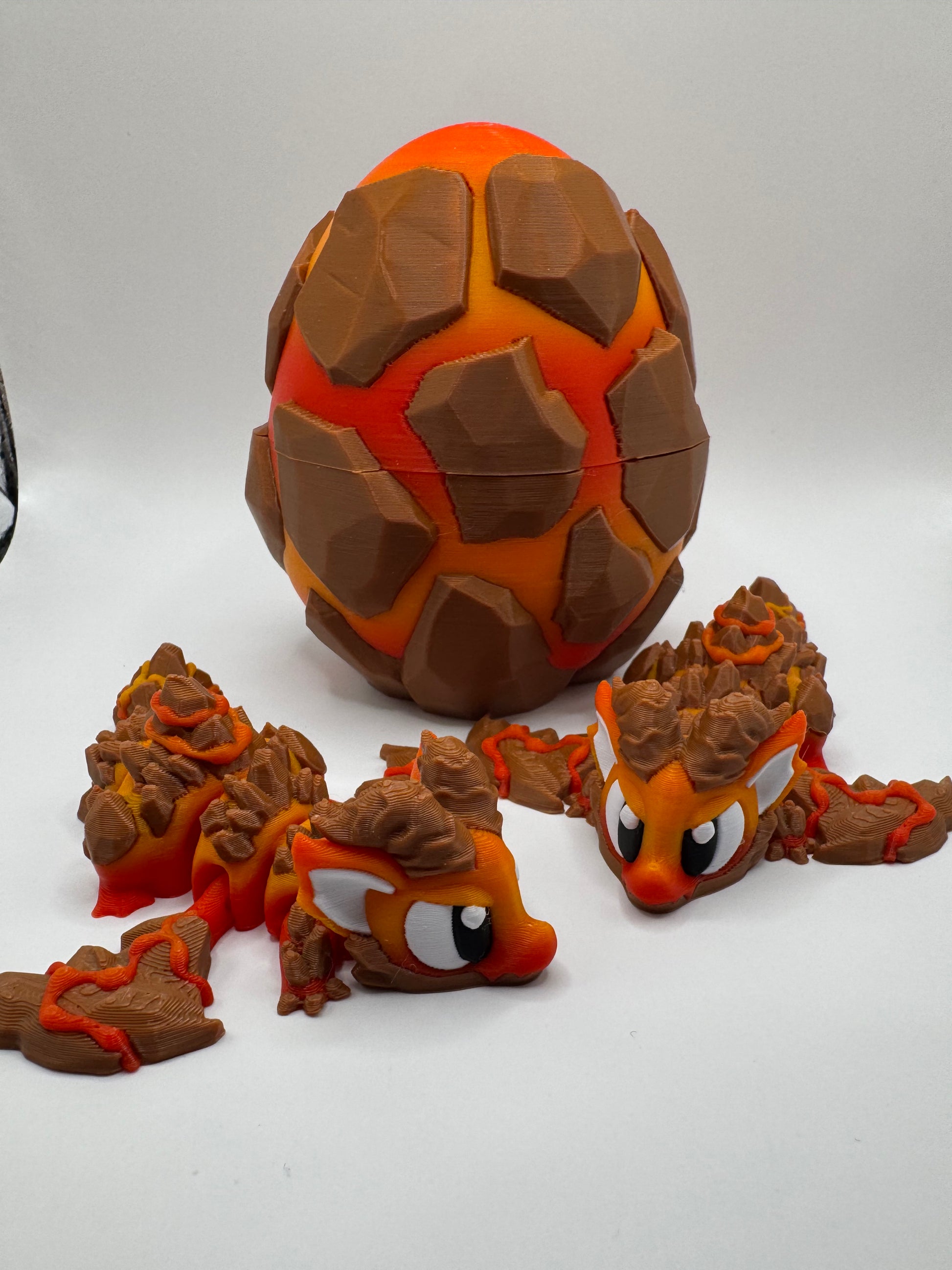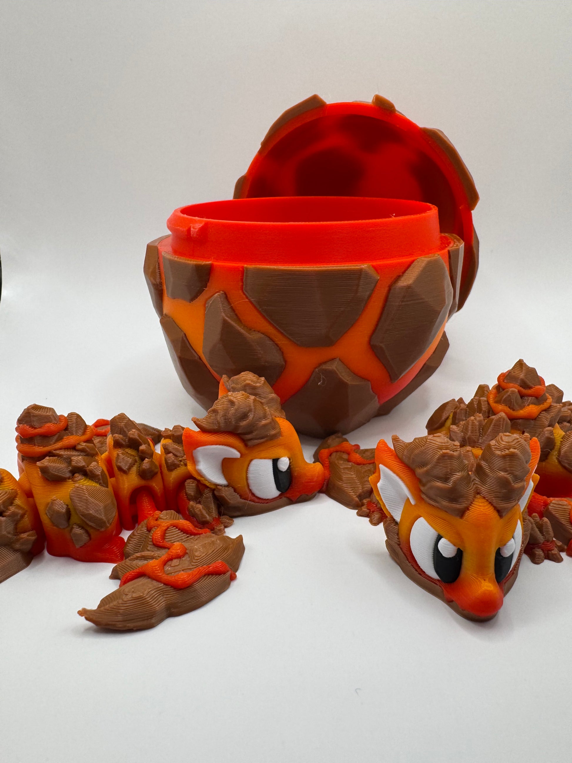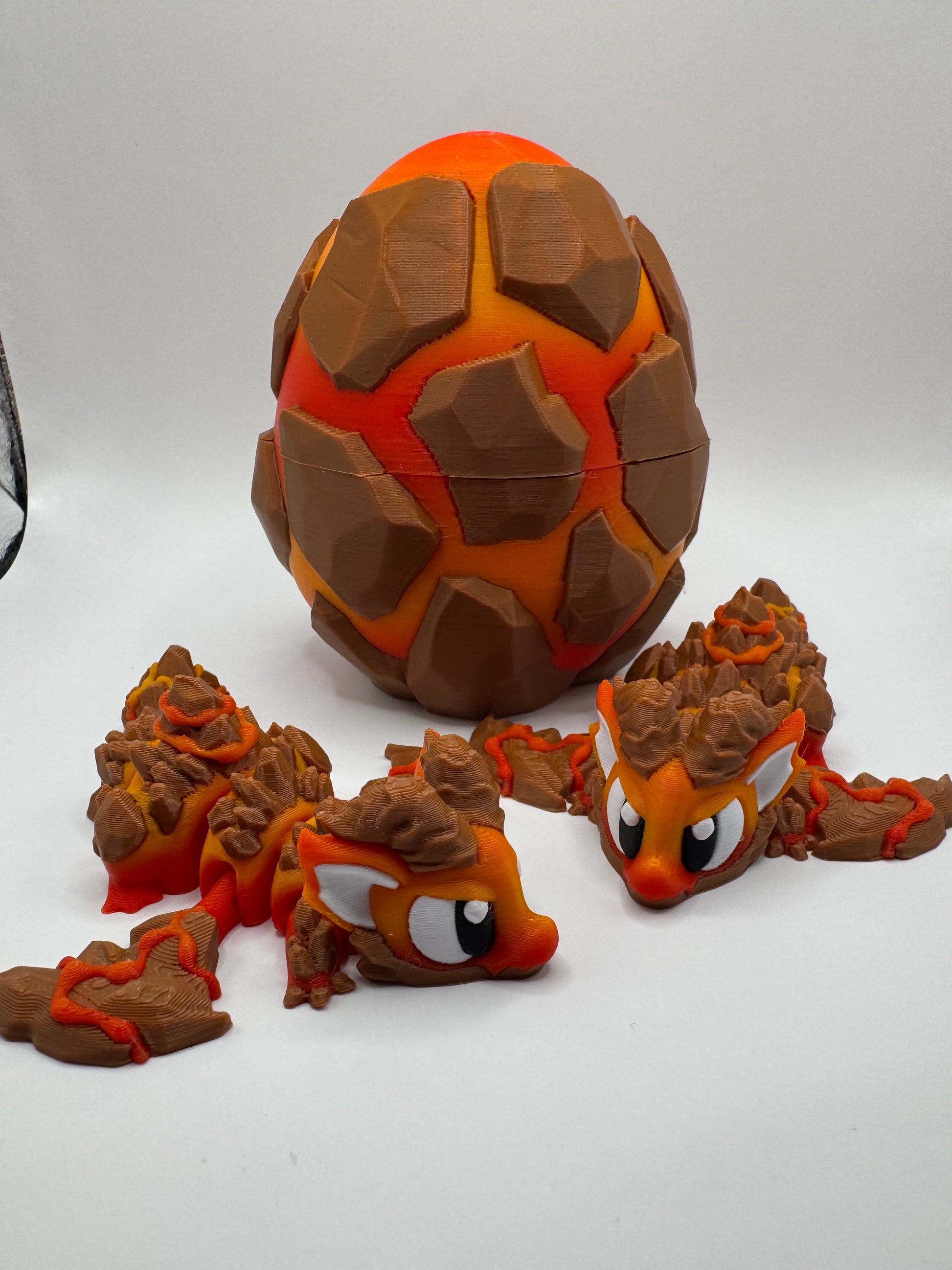 Bring home a touch of mythical fire with this 3D printed red dragon figurine, complete with a matching dragon egg. Designed for fantasy lovers and collectors alike, this mini creature is fully articulated, making it perfect for fidgeting, posing, or display.