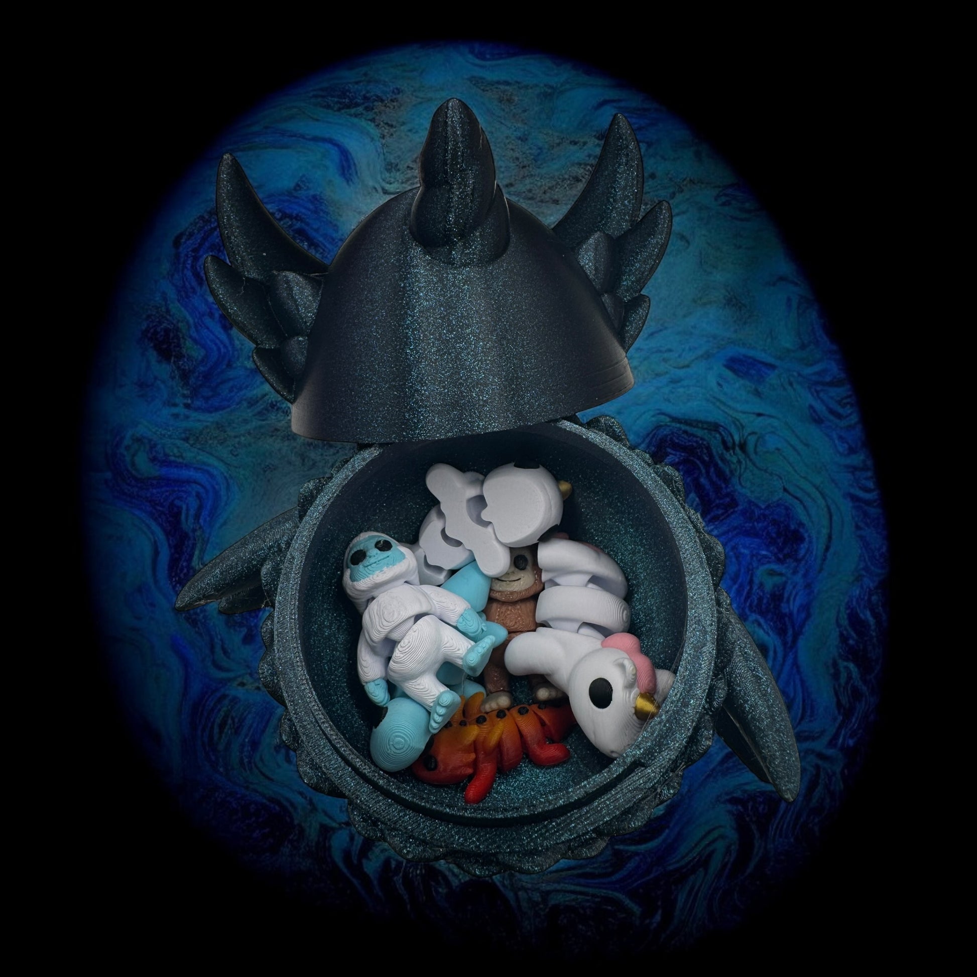 - 1 Snap-Fit Spiked Dragon Egg Container (parkly filament)