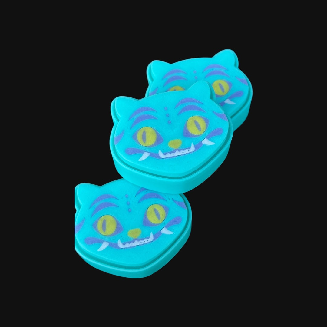 - Cute and “derpy” cat face design with vibrant details